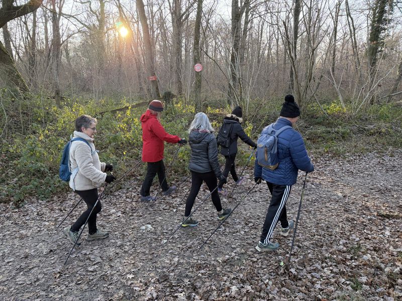 Samedi 8 novembre, 16 participants. Un bon petit groupe ce matin, le geste marche nordique est en cours d’acquisition.