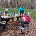 Nous étions 21 participants le matin et 17 l’après-midi. Nous avons commencé la matinée avec la neige tombée en début de matinée, ce qui a sublimé le paysage. Pour rendre la rando plus sympa et aventureuse, nous avons emprunté le plus possible des sentiers. Des plaids et le beaujolais nouveau étaient proposés le midi pour nous réchauffer. Le retour aux voitures à 15h15 s’est effectué sous le soleil. Les chaussures furent humides mais propres, comme promis lors du briefing du départ 😉.
