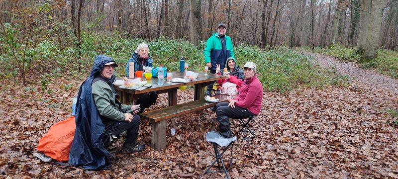 Le temps pluvieux n’a pas découragé les 6 valeureux randonneurs, qui étaient tous préparés mentalement et vestimentairement. Malgré la pluie, la boue et le dénivelé positif du matin, nous avons parcouru, dans la bonne humeur, 12 km avant le pique-nique de 13h. Nous avons profité du seul répit pluvieux de la journée pour déjeuner tranquillement. L’après-midi, nous avons profité des chemins et sentiers non boueux des bois de Meaux pour accélérer la cadence pour un retour aux voitures à 15h.