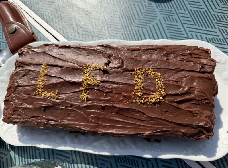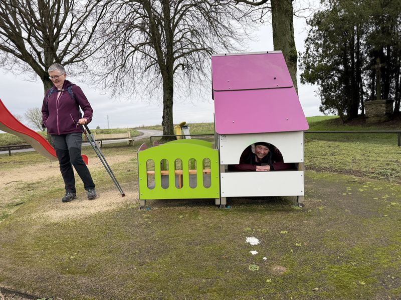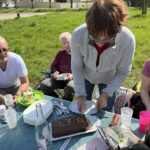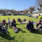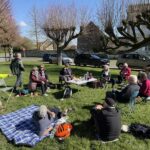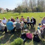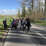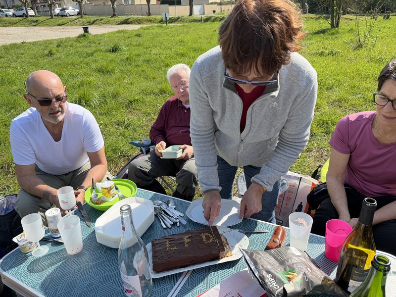 C’est le jour du printemps et nous profitons du soleil toute la matinée. Philippe et Antoine les locaux de l’étape, nous commentent quelques points particuliers de leur village, lors de ce parcours. Nous terminons cette matinée par un pique-nique avec un super et succulent dessert à l’effigie de La Foulée Douce, fait par Martine avec l’aide d’Eric bien sur 🙂