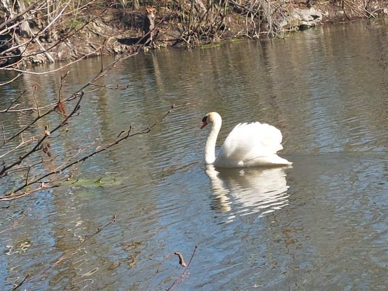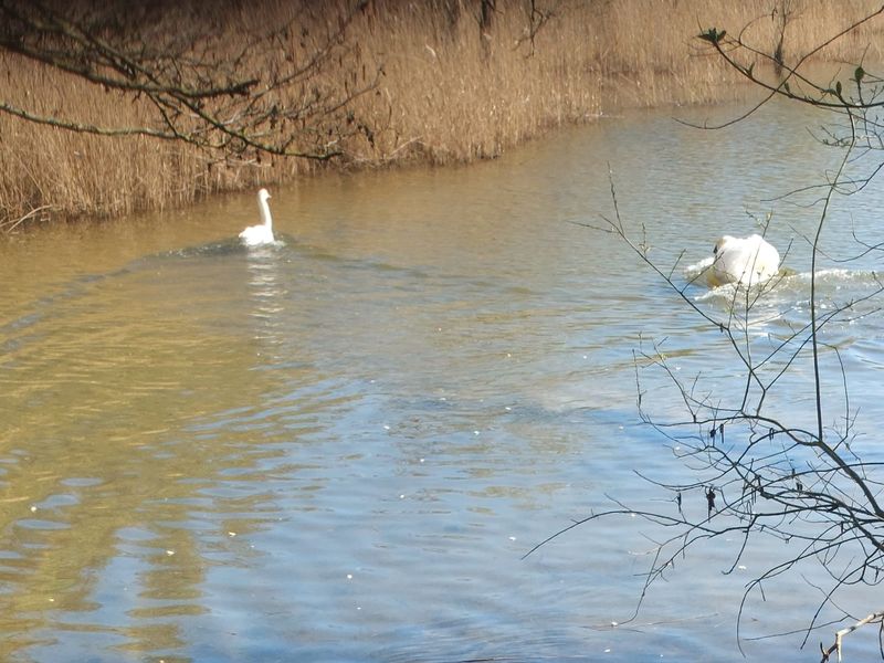 Chemin faisant, une cygnesse avait trouvé refuge sur notre chemin alors que le cygne l’attendait à 2 pas de là.