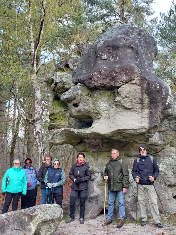 Ensuite, nous nous dirigeons vers les Bruyères de Frais Vent, lieu identique à la forêt de Fontainebleau avec ses rochers aux formes biscornues qui révèlent toutes sortes de formes animales et humaines.
