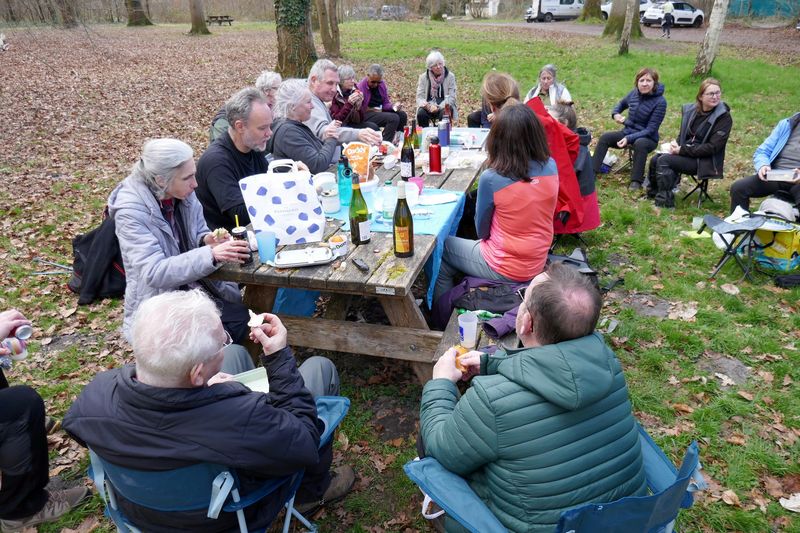 Belle météo pour cette journée de randonnée. Nous avons quand même évité une partie du bois d’Automne, car trop humide et boueux. Quelques participants avaient amené de quoi pique-niquer pour terminer cette matinée ensoleillée.