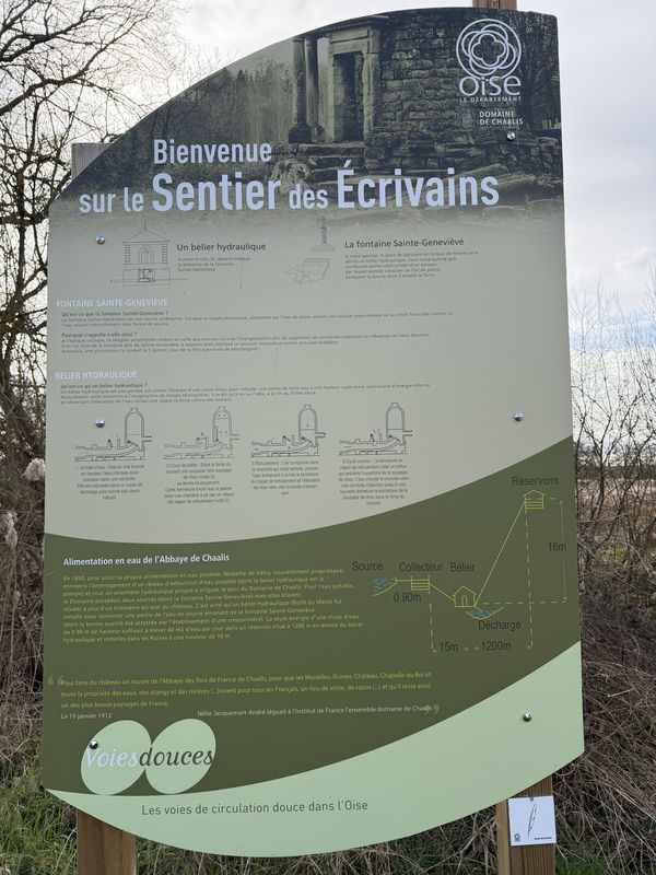 Reprise de la rando de l’après-midi, un aller et retour vers le bénitier Saint Hubert, la fontaine Sainte Geneviève et le bélier hydraulique de Chaalis.