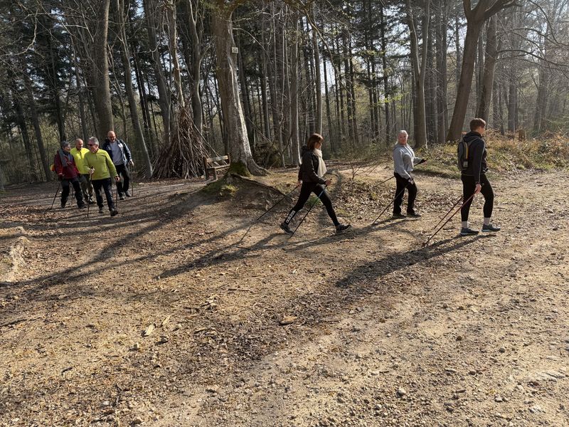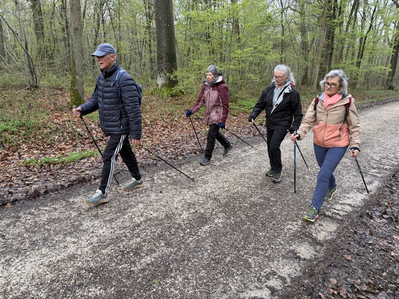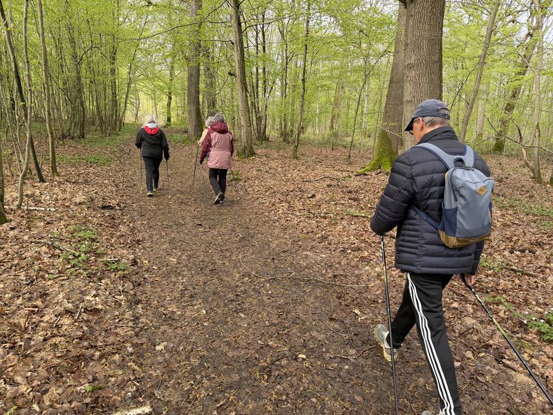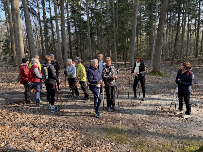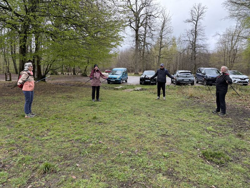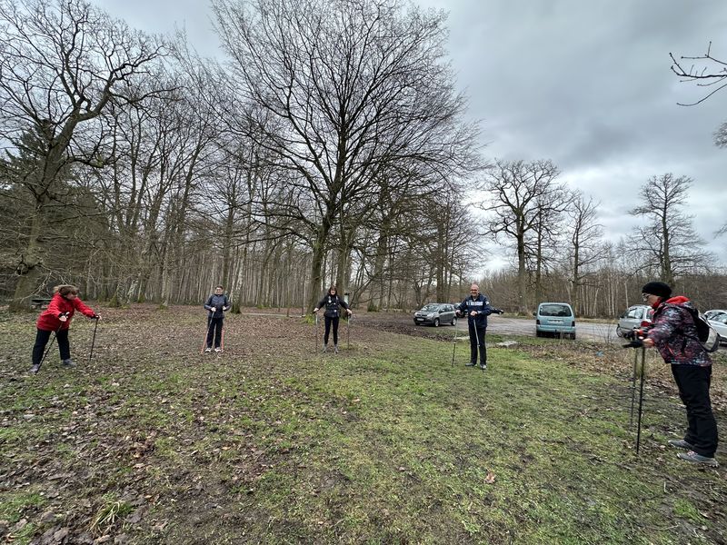 Samedi 3 janvier, 8 participants Malgré la température négative ce matin, nous avons fait une belle séance. Échauffement avant le départ pour marcher sur les chemins verglacés par endroits. Retour aux voitures après un peu moins de 2 heures à déambuler dans la forêt.