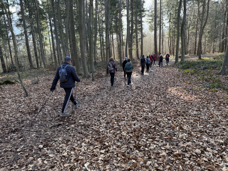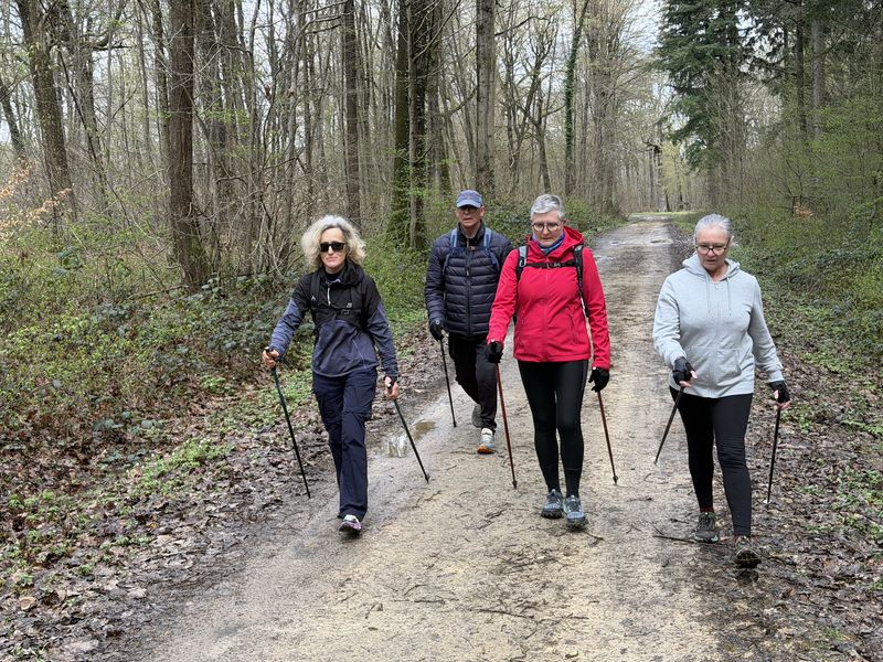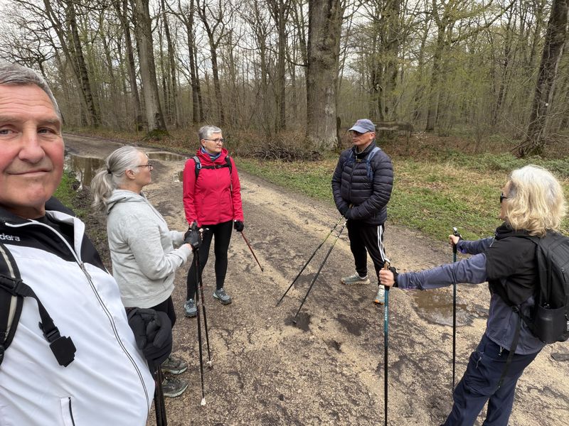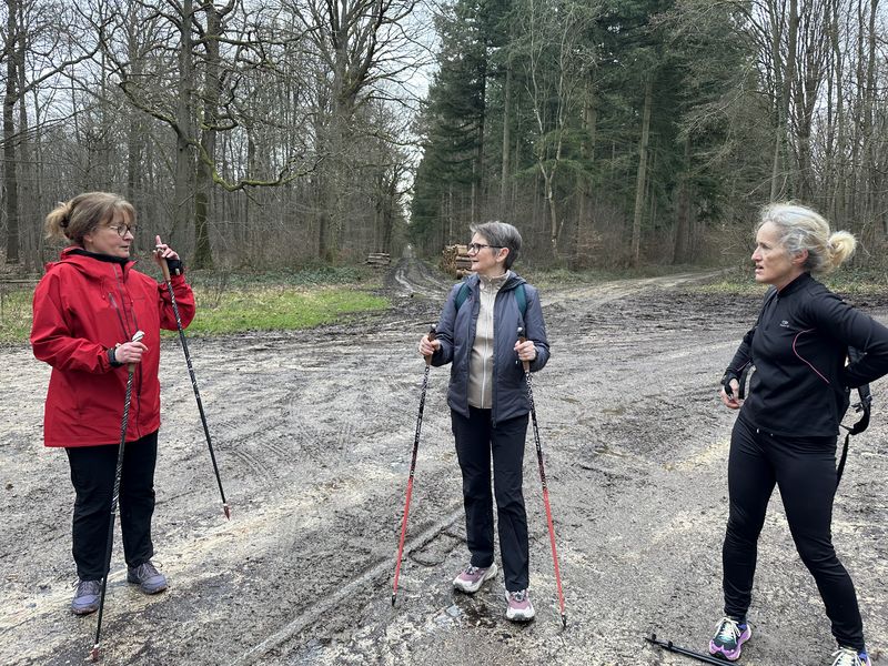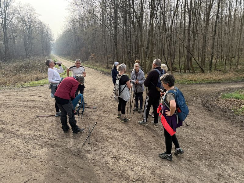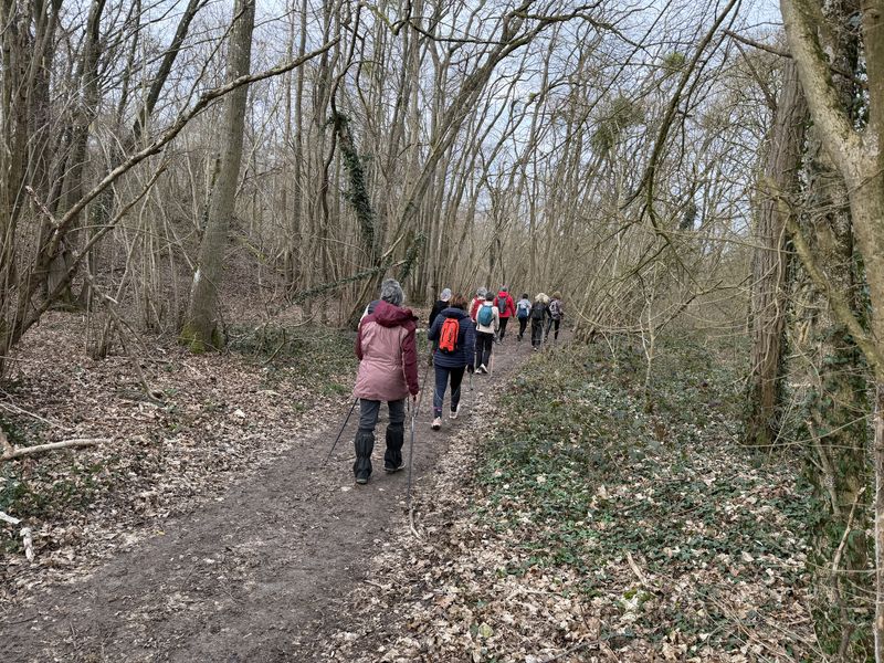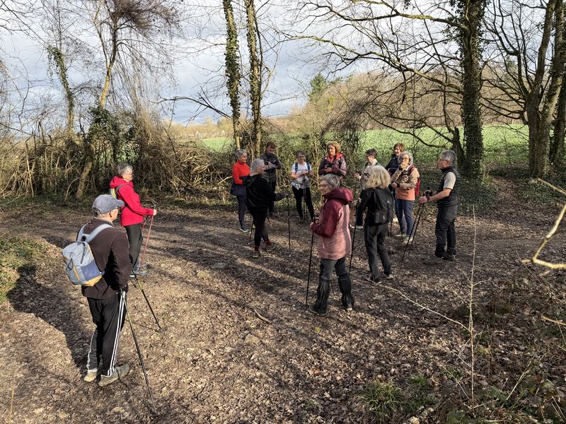 Samedi 28 février, 14 participants. Quelques nuages à l’horizon, finalement cette séance s’est terminée sans pluie et dans la bonne humeur, en marchant sur des chemins parfois boueux.