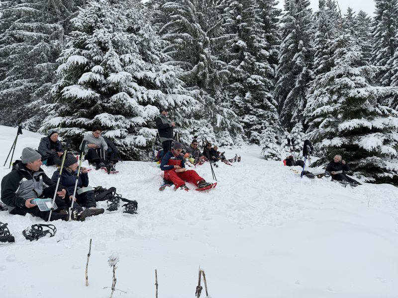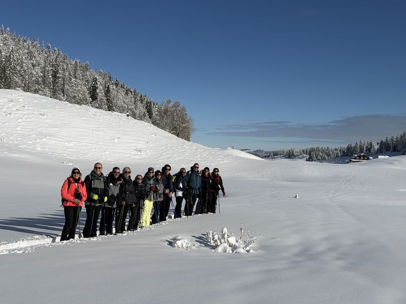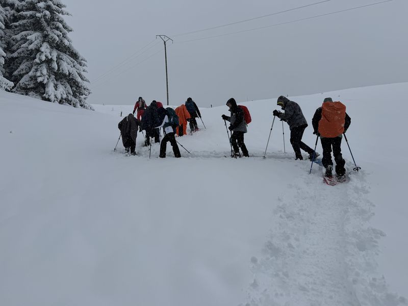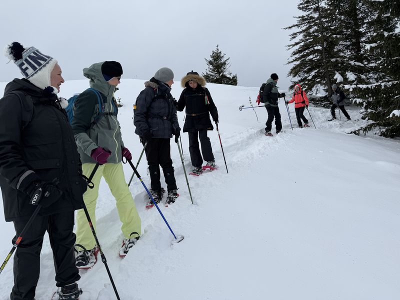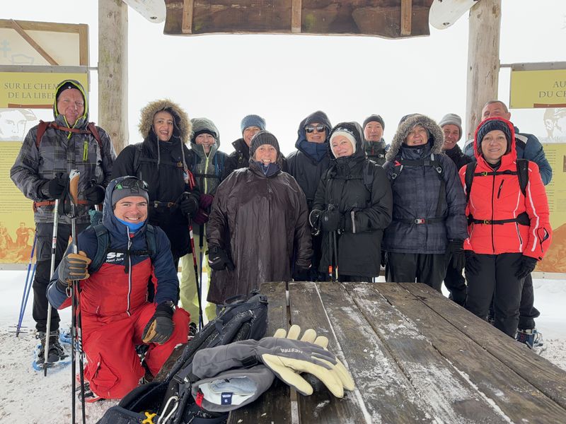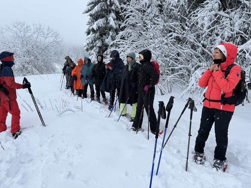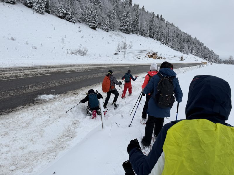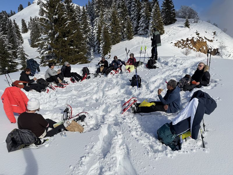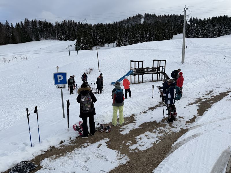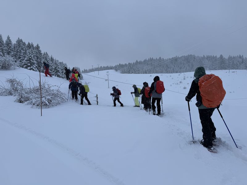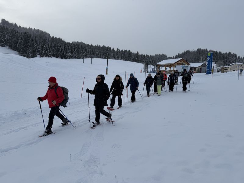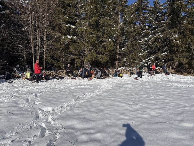 Après une courte initiation sur la marche en raquettes, c’est parti pour une belle rando, pique-nique en bordure de bois et retour par la piste de ski.