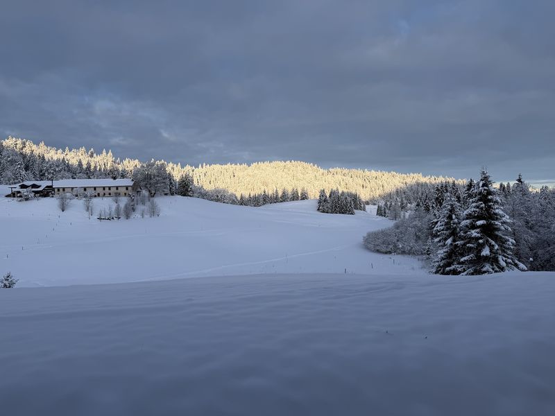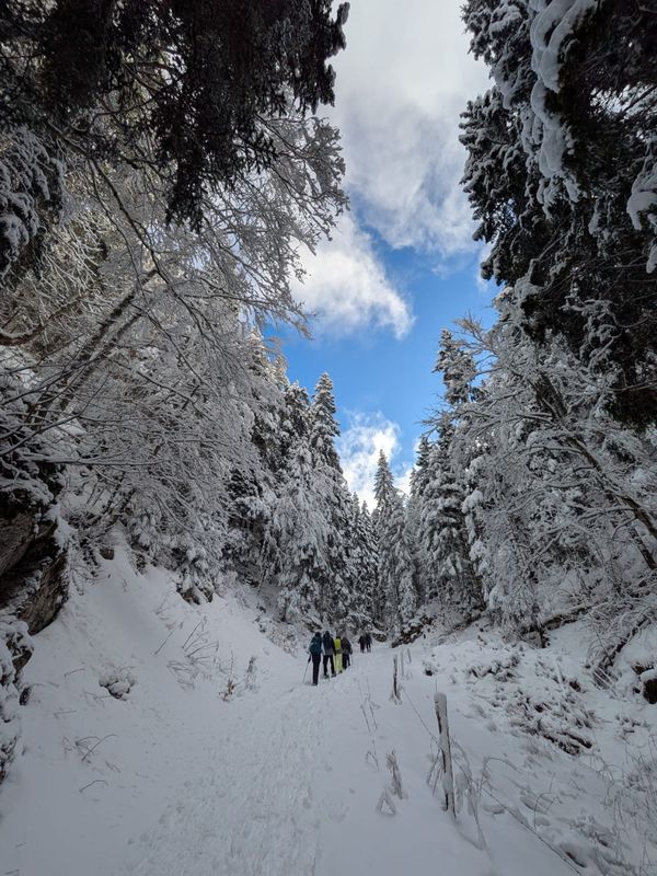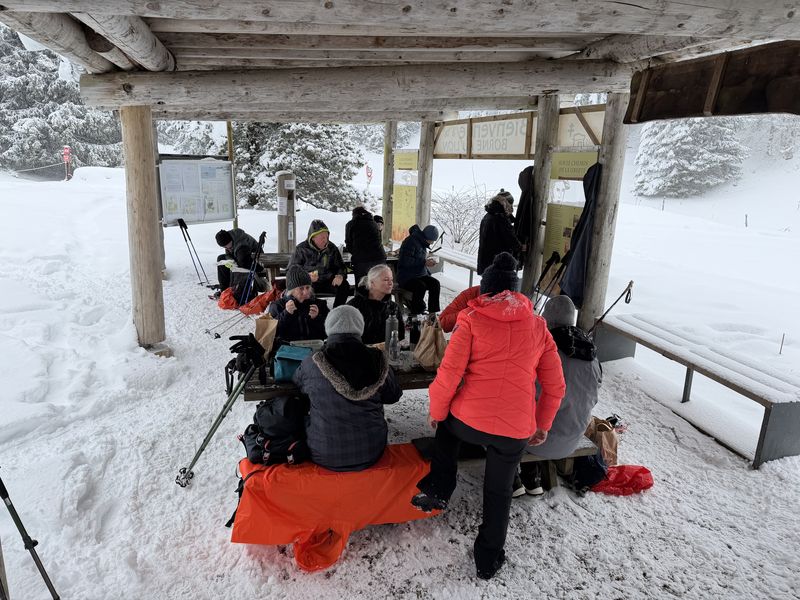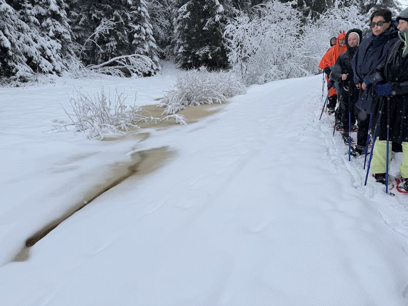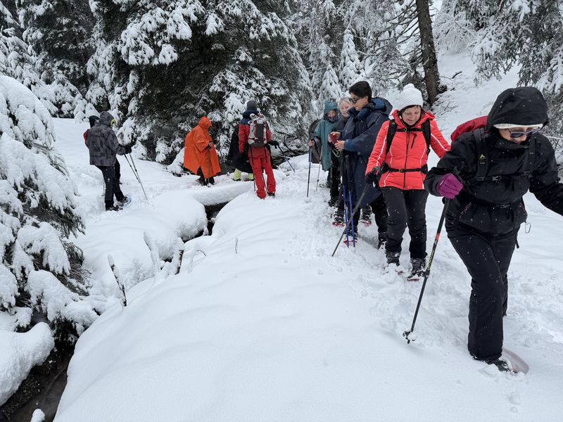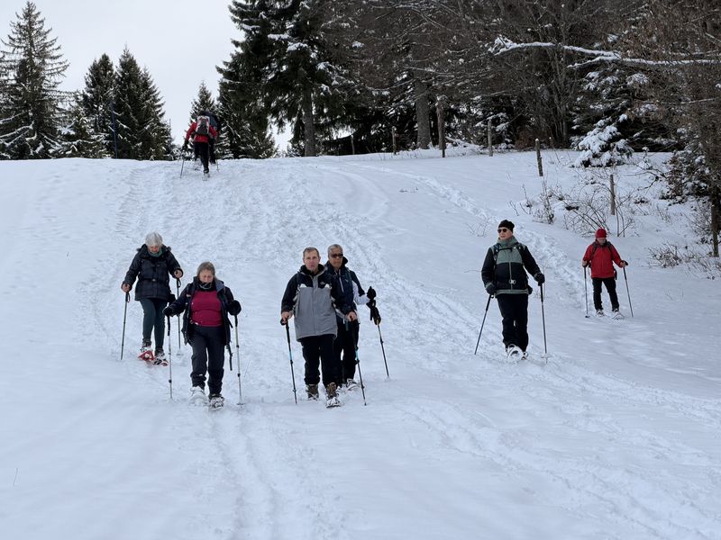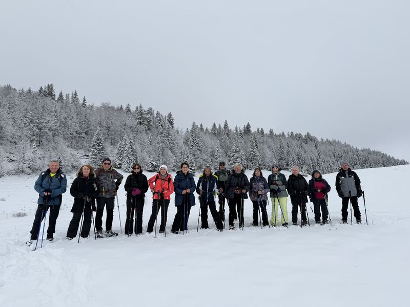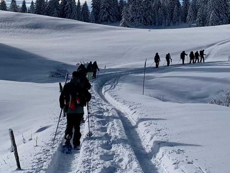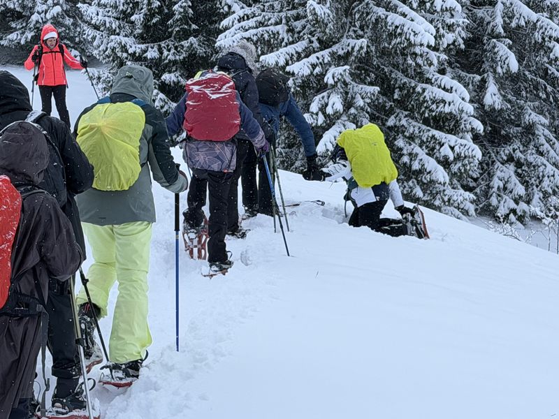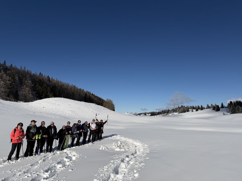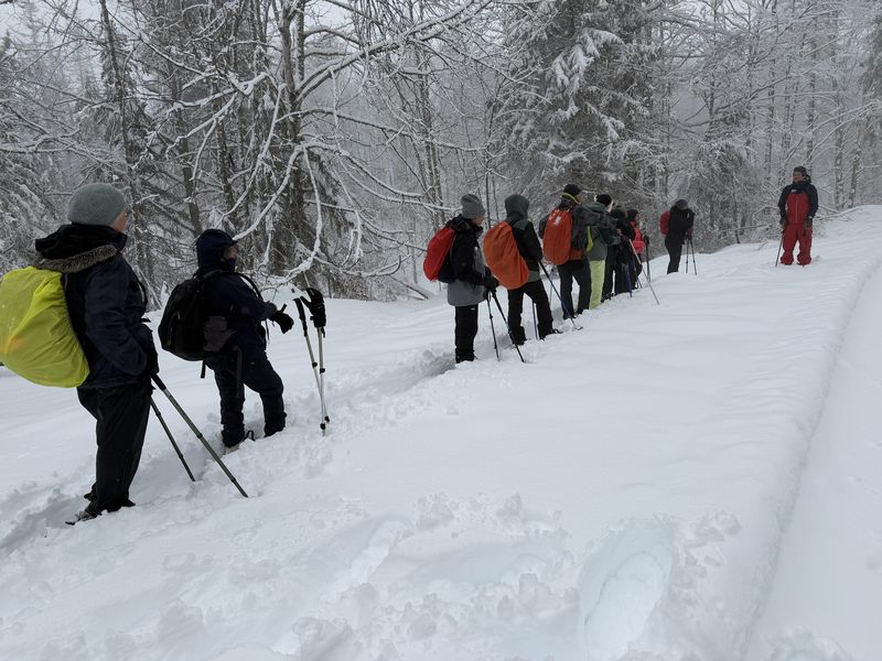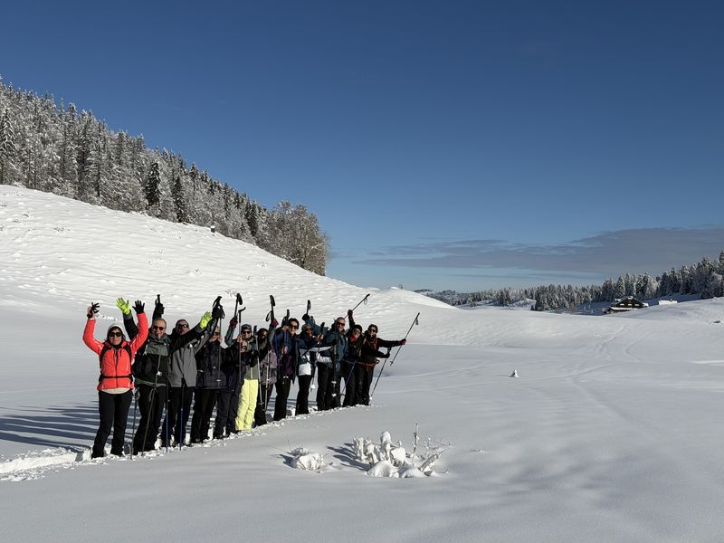 Après une courte initiation sur la marche en raquettes, c’est parti pour une belle rando, pique-nique en bordure de bois et retour par la piste de ski.