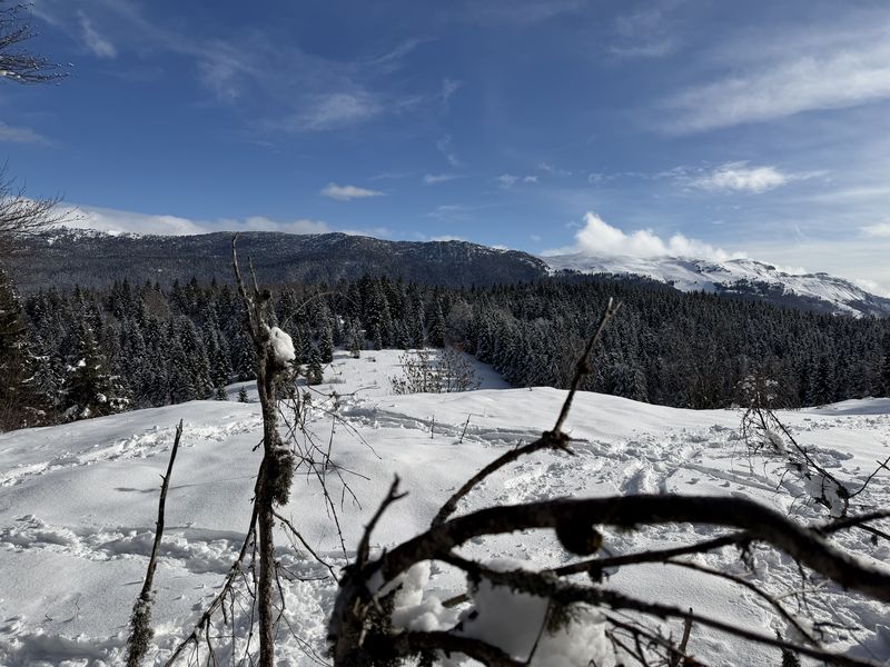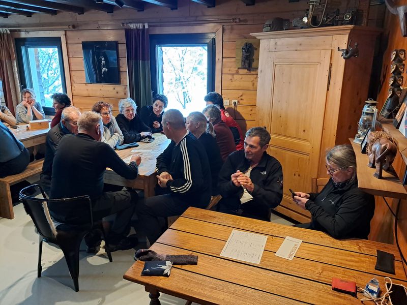 Vendredi 30 janvier, départ en voitures sur des routes enneigées pour se diriger vers La Pesse, petit village au départ de notre randonnée du jour. Le but est d’aller pique-niquer au sommet de la « Borne au Lion » où heureusement nous pouvons nous abriter de la neige pour manger. A la suite de quoi, notre accompagnateur Youri nous proposa d’aller nous réchauffer avec une boisson chaude dans un refuge à 10 mn de notre position. Quand tout le monde est bien réchauffé et presque sec, nous repartons vers nos voitures environs 2h00 de marche pour clore cette journée et cette semaine passée avec un très bon groupe.