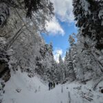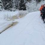 Nous sommes tous prêts pour 9 h raquettes fartées et nous faisons connaissance avec Youri notre guide de la journée. Nous partons des Moussières à la découverte de la forêt enneigée. Nous prenons la direction de la grande Moline. Nous découvrons quelques traces d’animaux (lièvres, renards, écureuils) et Youri nous explique la vie de la forêt. La pose pique-nique est bien appréciée de tous. Nous repartons vers le lac de l’embouteilleux (qui fourni en eau courante tous les alentours). Nous faisons une halte à l’Enquerne où nous decouvrons un petit canyon, puis retour à notre centre. Nous avons fait 10,3 km.