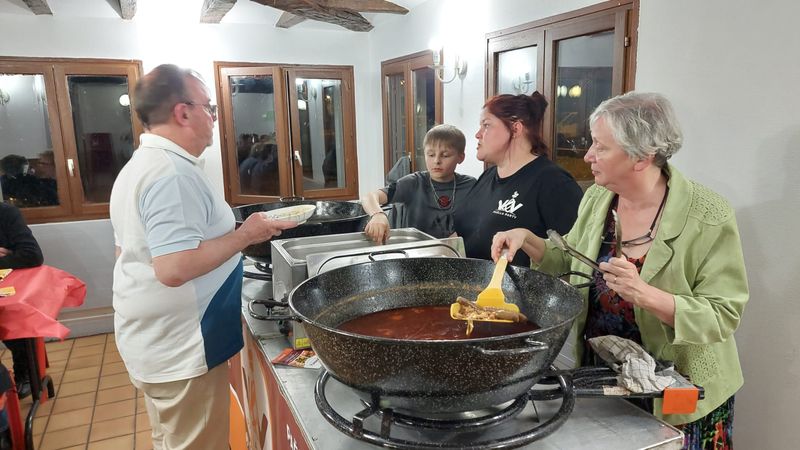 Tous les convives étaient invités à ramener chacun leur assiette pour se faire servir le couscous préparé par Vanessa, une petite file d’attente s’est formée devant les tables où sont installées les chaudrons.